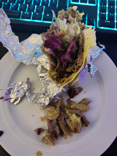 Der schicker kam danach. Ich freue mich auf den ersten Biss und hau richtig rein. Merke aber schnell das ich anstatt Hauch dünn geschnittem Fleisch eher die Konsistenz von gyros im Mund habe. Ich schau mir das also an und merke dass ich hier die halbe Resteplatte vom unteren Rand des Spieses drauf habe. Ein paar stückchen sind ja okay ... Irgend wo muss das Zeug ja hin aber den halben dürüm mit centimeter dicken stückchen ist absolut Wiederlicht. Der Appetit vergangen und der Frust groß. Würd ich so eigentlich gerne reklamieren aber ans Telefon geht ja...