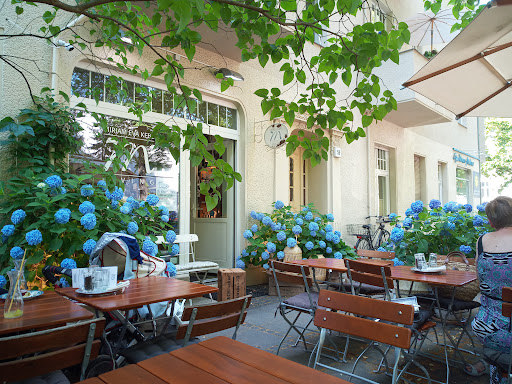 Das Café hat einen wunderbaren Aussenbereich, umgeben von Blumen. Wenn die Sonne scheint ein kleines Paradies. Der Innenbereich ist richtig, richtig gemütlich und so kann man kann hier auch mit Laptop gut arbeiten, WiFi ist vorhanden. Die Angebote sind den höheren Preis, absolut wert und die ebenfalls, hausgemachten Spezialitäten, wie Marmeladen, Salze und Tees, sind zu Lieblingsgeschenken geworden. Eine liebenswerte Mannschaft und Bedienung runden das Wohlfühlen hier ab. Um die Ecke, der kleine, neue Eisladen. Aber Vorsicht: Suchtgefahr!! Gut das der Preis pro Kugel einen dann doch etwas zurück hält... aber, wir sind es uns...