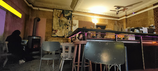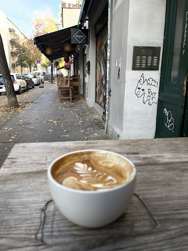 Read moreThe coffee is great, if you can, sit inside once. Surreal cozy place The walls are bare with old leftover patterns of older interiors. Accentuated with bold LED lights. Carpets on the wall. Power plugs running along the ceiling with cords coming down. Old dark wooden floor boards. The coffee station is an island 🏝️ in the middle of the place with low tables and chairs surrounding it. We are all just floating in good coffee...