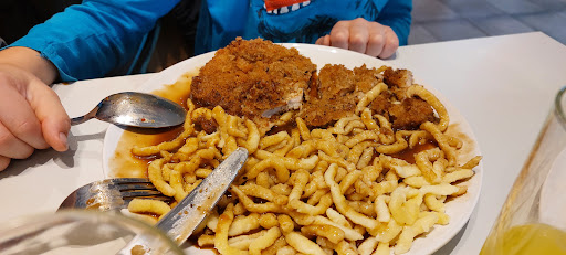 Wenn der Home-Office-Hunger ruft und der Kühlschrank schweigt, dann greife ich gern zum Telefon – und bestelle hier. Denn was dieses Restaurant bietet, ist ehrliche, bodenständige Kost. Kantinenessen eben – nichts für Instagram, aber manchmal genau das Richtige, wenn die Seele nach Nudeln mit Jägerschnitzel verlangt. Oder nach diesen Nudeln mit Tomatensoße und Jagdwurst, die irgendwie immer nach Schulausflug schmecken sollten – aber hier leider eher nach Ketchup mit einem leichten Essigstich. Ein bisschen wie “Hausmannskost auf Speed-Dating”, nett gemeint, aber nicht immer ein Treffer.