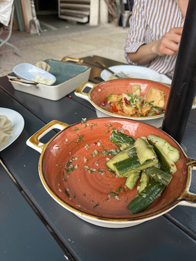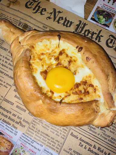 Was here a month or so ago before Corona restrictions so will be talking about the indoor experience. The restaurant is spacious with interesting decor and seating with an open counter where you can see the staff working and preparing food which is a nice touch. As a group of three we ordered what I deemed are the must haves of Georgian restaurant eating.