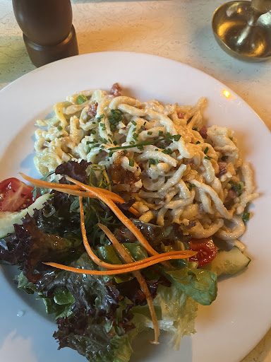 Read moreI ordered the Schnitzel and an Apple Strudel. Easy order, right? The Schnitzel arrived cold and bathed in the green salads' dressing but also the potato salad it came with, had the weirdest texture of mashed potatoes ??? The Schnitzel was so sad, tasted as if it was cooked in super old oil and I had the impression the cook would rather go home than put any effort in it. 20 euros for a Schnitzel is charged in the Michellin star restaurants. It should definitely not be the case here. And 5 euros for a strudel you have to look up with a magnifying glass, is also not justified. Anyway, I am unfortunately still sick to my stomach after eating the food and I genuinely hope that I won't get food poisoning....