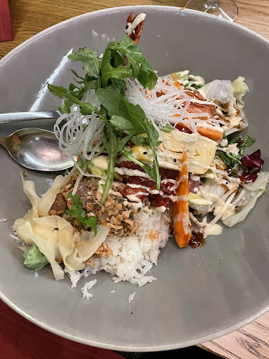 We ordered soup (we simply asked for vegetarian soup, hopefully it was) which was oily creamy and salty, far from our expectations, we couldn’t finish it. After we put it aside, we received a rice dish with a creamy peanut sauce, that was also super oily, sweet and salty. We couldn’t finish it either, despite our hunger (just got to Berlin after a 5 hour flight). Last, the “popular dish” according to Google Maps: The Seafood bowl, the only thing that tasted good in it was the lettuce! We tasted everything else in the bowl, the best of it was tasteless the worst, well, you can guess yourself.