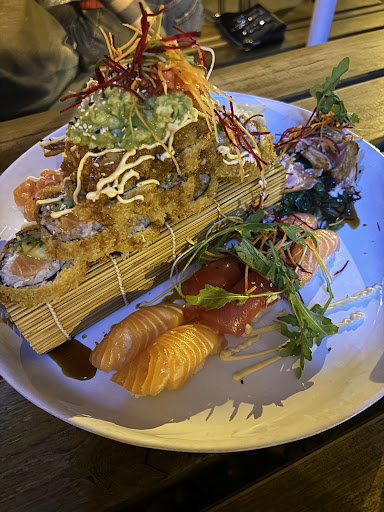 We ordered sushi (as seen in the pic). Quality was average, not terrible, not exceptional. For some reason the arrangement was super messy, they sprinkled salad over the sushi and many pieces were stuck together, leading to them getting broken when trying to separate them. When the plate arrived, we didn’t receive chopsticks not napkins. Again we had to look for the waiters to get some and be able eat.