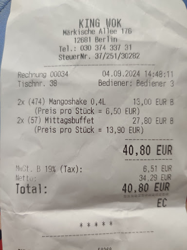 After we finished eating, we informed the waiter that we'd like to pay by card. The waiter showed us the amount of 42.80 euros on the card payment machine without saying anything. Thinking that this is the food + drink amount, we added some tip on top of it, and paid it with card and asked for the invoice.