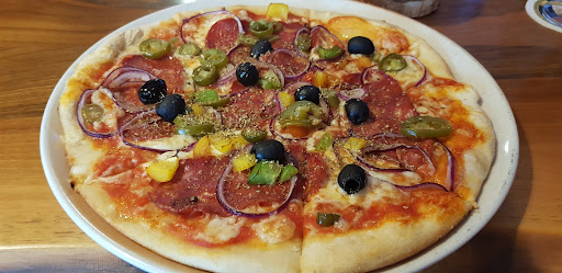 Read moreDommage qu'on ne puisse pas mettre 0 étoile car c'est indiscutablement la note qui serait la mieux adaptée pour cet établissement. Attente de 45 mn après la commande pour que nos pizzas soient servies alors que seulement 8 clients (incluant nous 3) étaient présents Toutes les pizzas étaient beaucoup trop salées; sur la mienne, j'ai dû enlever les anchois pour pouvoir la manger En dehors du problème de salaison, ces pizzas ne possédaient aucune qualité gustative digne de ce nom; "mangeables", sans plus. Au vu du temps qui avait été nécessaire pour obtenir les pizzas, nous avons jugé prudent de commander les cafés à l'avance, en précisant cependant qu'il convenait de les apporter "après". En fait, ils sont arrivés alors que nous en étions à au premier tiers de notre repas. Quand j'ai fait remarquer au serveur qu'un café se buvait chaud et que nous les avions commandés pour "après" les pizzas, il n'a pas jugé bon d'effectuer le geste commercial minimal, qui aurait été de les remmener pour nous en servir un chaud ultérieurement. Ambiance musicale constituée de tubes des années 80, ce qui n'est pas un crime en soi; cependant, comme la playlist était constituée de 6 titres au grand maximum, l'attente des pizzas a paru d'autant plus difficile. Accessoirement, il faut également signaler que dans les toilettes, les deux urinoirs sont hors service et que l'une des deux portes du compartiment doté de sièges ne ferme pas (oui, il y a bien 2 sièges côte à côte dans un seul...