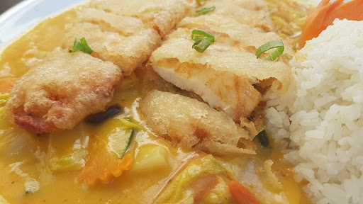 Ich war heute zum ersten mal dort und habe Gai Pad Kaprao (Name variiert etwas vom Restaurant zu Restaurant, aber so heiss es im Menü hier) zum Mitnehmen bestellt, ein klassisches, bekanntes und beliebtes Thaigericht, aber was ich bekommen habe ist Etwas, aber nicht das was ich bestellt habe. Der Name des Gerichts ist Kaprao, was Holy Basil bedeutet, eine bestimmte Art von Basilikum, anders als der hier bekannte Basilikum auch anders als Thai Basilikum, jedoch war davon nichts zu sehen, nicht mal Thai Basilikum. Im Menü steht bei der Beschreibung auch auf jeden Fall "Kaprao Basilikum" drin. Da war keine Form von Basilikum sichtbar. Statt Schlangenbohnen waren da auch nur Buschbohnen oder sowas Ähnliches drin. Dann die Konsistenz, das hier war ne Suppe mit bisschen Hähnchenfleisch und "Standard Asia Gemüse". Wenn ich Suppe sage, dann meine ich das auch. Das Fleisch und Gemüse ist bedeckt unter dieser Suppe, obwohl es ein Stir Fry Gericht ist. (Im Foto musste ich die Suppe rauslöffeln, damit man den Inhalt sehen kann, jedoch ist immernoch sichtbar, wie viel Suppe da ist) Geschmacklich war das auch nix. Sorry, aber geht so gar nicht. Das ist als ob ich einen normalen Döner bestelle und das ganze ohne Fleisch kriege oder einen Apfelstrudel ohne Apfel. Geschmacklich sollte es normalerweise stark Fischsoße, Holy Basil und Knoblauch lastig sein, war es aber weniger und hat mich eher an ne fertig Soße erinnert, oder in diesem Fall Suppe. Das ist definitiv das...