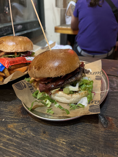 I ordered a basic cheeseburger (100g), as I always do when eating at a burger restaurant for the first time, and I found the burger acceptable. It had good flavor, but was nothing special. They put an orange sauce of some sort on it, which I was not a huge fan of. I feel that on a basic burger only ketchup and mustard should be used. I also ordered fries, which again, were only acceptable. The food was, however very well presented on the plate. One thing that I was surprised by was that the ketchup and mayonnaise were self-serve, which you don't often find in Germany. As for the staff, the man behind the count wasn't particularly friendly, but he was in no way rude or disrespectful. My food was also prepared very quickly and cooked perfectly (he did not ask how I liked my meat to be prepared). Overall, for €6.20, I think the quality...