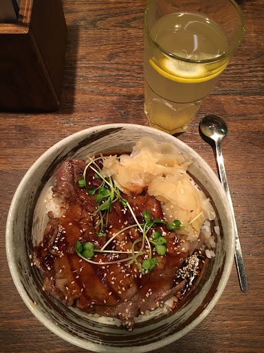 The food was mediocre. I felt like every single skewer was overcooked and hence dry. Moreover I did not appreciate their way of presenting our food. The special skewers as well as our main dish skewers were placed on top of a lettuce leaf, lots of thinly sliced daikon and were sprinkled with some sauce. Our rice came in an extra bowl, but somehow they thought they needed to garnish our rice by sprinkling some kind of sauce (soy sauce or teriaki sauce) unevenly on top of it.