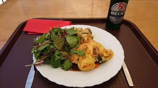 Etwas versteckt gelegen auf dem Gelände der alten Königstadtbrauerei, aber dennoch leicht zu finden. - Gute Hausmannskost zu üblichen Kantinenpreisen. Nach meinem Empfinden, in der Regel ausreichende Portionen. Es kommt darauf an, wer einem das Essen ausgibt! 😉 Etwas irreführend sind die Angaben auf der Speisekarte bezüglich der angebotenen Suppen. Sofern dort eine Suppe mit Bockwurst oder Knacker angepriesen wird, sollte man sich darauf einstellen, dass hier lediglich nur ein paar Scheiben der angepriesenen Wurst in der Suppe schwimmen. In anderen Kantinen steht das dann auch so in der Speisekarte! Das ist meiner Meinung nach nicht ganz fair. Die Bemessung der Suppenportionen sind eher was für den kleinen Hunger! Ich esse sehr gerne Suppen, aber diese Portionen reichen mir nicht!