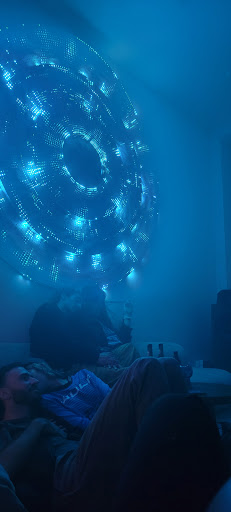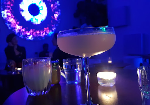 Read morewe ordered fancy cocktails named lavender bee's knees & pink mezcal - with homemade syrup, chili salt coating and a flower in the icecube. ehmmm yum ! our tastebuds are tingling and buzzing just like the circular light installation vibing with the music. there are cushions on the floor and square pillows on the wall, softly providing a gentle embrace. a very healthy monstera is chilling in the corner and white cotton wool decorating the window, a fog machine surrounding us with clouds every now and then - spacyyy !! plenty of carpets on the floor and low tables + beanbags, infused by the staff's japanese roots, they let us know. today is shoes off day and we were offered some very säxy pantoffeln, feeling cozy. the painting in the bathroom is asking us to abandon all hope upon entering the toilet, reminds me of a bayo akomolafe quote about the power of losing hope that i recently came across. this place is called kwia, is it a word play on queer ? we're not sure yet, but will surely come back...