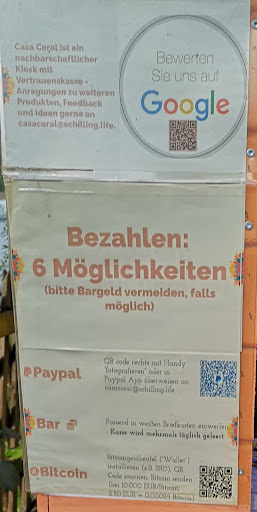 Die Vielzahl an Zahlungsmöglichkeiten sind ordentlich. Bar - da wirft man das Geld in einen Briefkasten. Es kann per Karte, EC oder diverse Kreditkarten, gezahlt werden. Dann gibt es noch per PayPal. Und, was ich nicht gedacht hätte per Bitcoin. 2,50€ fand ich jetzt ein bisschen hoch. Und die vier Sorten, die ich mit meiner Frau und unseren beiden Jungs ausprobiert haben, fanden wir jetzt alle nicht so doll. War jetzt nicht das leckerste Eis. Da gehen wir doch lieber zum Eiscafé in der Nähe. Für jeden eine Kugel ist dann auch günstiger.