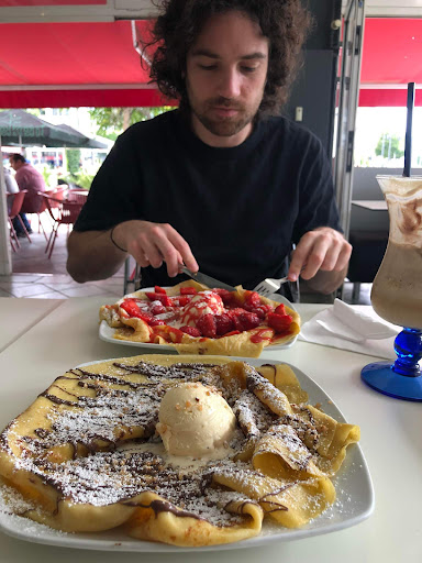 Read moreDer schlechteste Malaga-Becher meines Lebens. Fürs Personal: Malaga-Eis zeichnet sich dadurch aus, dass die Rosinen zuvor in Malagawein (bei billigen Varianten auch Rum) eingelegt sind. Bei einem guten Malaga-Becher wird die Sahne obenauf noch mit einem Löffel der Weinmarinade übergossen. Ich hatte nichts von beidem. Die Rosinen im Eis waren "steinhart", die pfundweise (mit den Fingern) auf der Sahne verteilten ebenfalls. Tüte Rosinen/Sultaninen auf, fertig. Statt mit Marinade war die Sahne mit Karamellsoße ertränkt. Grauenhaft. Abartig. Geschmacklos im Sinne des Wortes, einfach nur süß. Das Ganze für satte 7,90 €. Für meinen Geschmack ein Alptraum. 2 Sterne, weil die Mitarbeiter freundlich waren, das Schokoladen-Eis OK und das Pistazieneis nach Pistazie schmeckte - allerdings auch für 50...