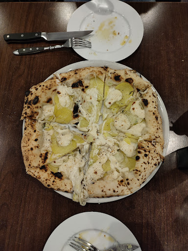 Based on the high rating, I was really looking forward to some great pizza for dinner. I walked into the restaurant on a very chilly night. Right away, I noticed how cold it was. I looked around and there was another table seated and the couple had their jackets on. For some reason, the heat wasn't turned on in the restaurant (maybe they though the wood burning over was enough to heat the entire place?). Regardless, I had to keep my jacket on for the entire dinner. Beyond that, the ambiance was severely lacking. The lighting was harsh and cold, and overall the place had a really cheap feel to it. I thought to myself, considering how bad the ambiance is and how great all the reviews are, the pizza is going to be amazing!