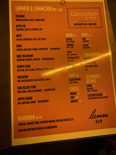 Read moreI love the Lamm bar!!! The cocktails are excellent, prepared with quality and are super exclusive!!! The interesting thing about this bar... you can choose to drink the large cocktail or the same version in a smaller size!!! I love the idea of ââdrinking small cocktails and being able to try almost the entire menu!!! And every week, a new cocktail is developed by the bar!!! Water and snacks, such as a mix of peanuts and nuts are offered by the house and you don't have to pay anything!!! Super cozy atmosphere and a great outdoor area to enjoy your cocktail on warmer days!!! Super...