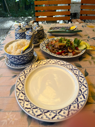 If I could give zero stars I'd totally do so. This so called 'restaurant' (which is basicallg a whole mess) needed 90min to serve a basic soup. I came here because of the many people tellung such lovely things about this place but even after complaining about the long waiting time we had to wait an additional 30min(in total 90min). The ambient is nice but I'm not willing to sacrifice my time for a bit of detail (not even that Thai as I thought it'd be). In a nutshell: Just don't come to the place. The soups are microwaved, the main dish takes nearly 2h to serve and the waiters are rude/incomprehensible. Even with fluent German/English you cannot expect anything from them. To describe this place in one...