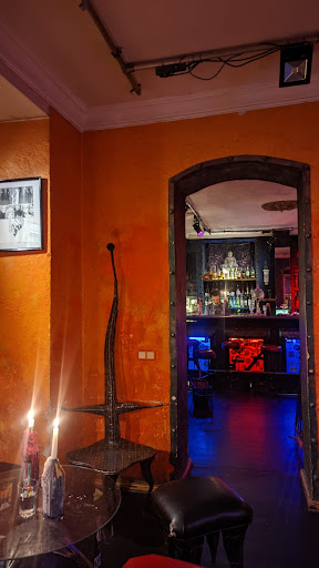 This snug bar with a dark, arty atmosphere features a foosball table & a small dance floor.