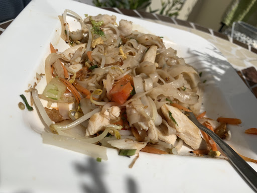 Heute stand auf meinem Speiseplan Nudeln mit Hühnerfleisch oder auch (Pha Xao 15c.) genannt. Vom bestellen bis zur Essen Übergabe vergingen grade mal 10 Minuten. Das fand ich mehr als okay, Zeitlich top. Bedingung sehr freundlich und einem kleinen Plausch nicht abgeneigt.