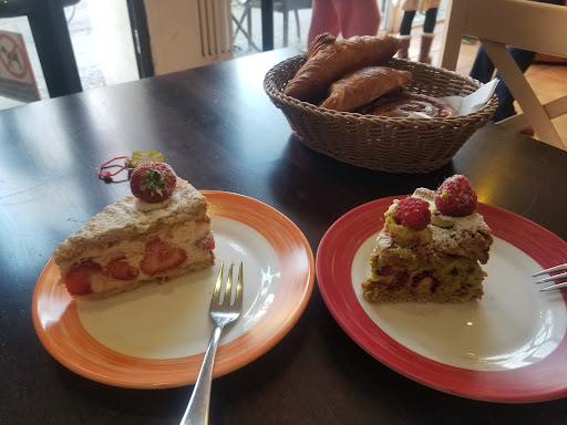 Read moreDefinitely the best croissants I've had in Germany. Light as a feather, flaky, deliciously buttery and beautifully laminated. Actually all vienosseries we tried were excellent but the plain croissant was exceptional! Cakes too were delicious: Chocolate Mousse cake, Fraisier and Montobello were not too sweet, nicely balanced but full of flavor, light and creamy, done just right. They also get a plus for always keeping a jug of water and glasses for costumers to serve themselves, which I find is a very french thing and unfortunately rare in Berlin. Prices are quite decent, specially considering the quality of the products. I would definitely recommend this place to all those who enjoy french vienosseries...