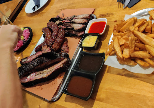 Read moreI think this is one of the top BBQ locations in Berlin (and I'm on a quest to visit every single one). The flavor is very, very good. Good smoke flavor, hard to beat, they know their craft very well. Good selection of meats (brisket, pork ribs, sausages and pulled pork, Pastrami on Fridays), cool presentation of the pork ribs. Excellent, excellent picked sides (pickles, red onions) and tasty sauces (sweet BBQ, hot BBQ, mayonnaise). Fries are also awesome.