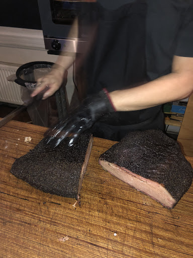 I speak with the staff and we finally get a place inside. We manage to order only several minutes later. By 9pm our food arrives - only one lonely brisket slice, a complementary sausage and two portions of fries. We had ordered 400gr of brisket but everything was finished. The waiter tells us we arrived late, however we waited 1hr before getting our food.
