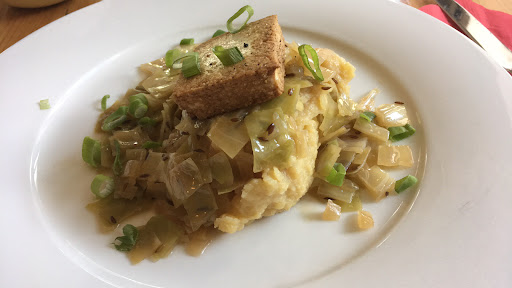 Mellow cafe within a Buddhist center, serving a veggie menu with vegan options, plus homemade cakes.