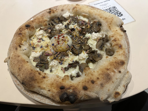 Read moreReally out-of-this-world - so amazingly good! The pizza is next level - an amazingly soft, yet perfectly baked and crispy on the edge pizza crust, fantastic cheese, and they even have flowers to add on the top! Also tried the vegan pizza - genuinely the best vegan pizza I’ve ever had in my life. Perfect crust, just the right amount of marinara sauce, so that you just get the flavor but so that it’s not overwhelming, baked so that it sits on the bread. The servers are so nice, polite, accommodating, and understanding. I made a mistake with my order, and they even let me replace my order free of charge. One of the best pizzas I’ve ever had, coupled with fantastic service and tables laid out in the restaurant that encourage socializing if you wish and can deliver privacy if desired. There are two or three tables that seat multiple people and many that seat two or three but are very spacious. Accommodates all tastes, flavors, and social preferences with delicious Neapolitan pizza. Cannot...