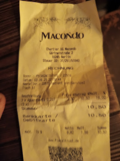 Macondo has a nice atmosphere and strong potential, but this kind of attitude destroys its charm. I sincerely suggest that the owner pay closer attention to staff selection—motivated and respectful employees could easily turn this place into one of Berlin’s most...
