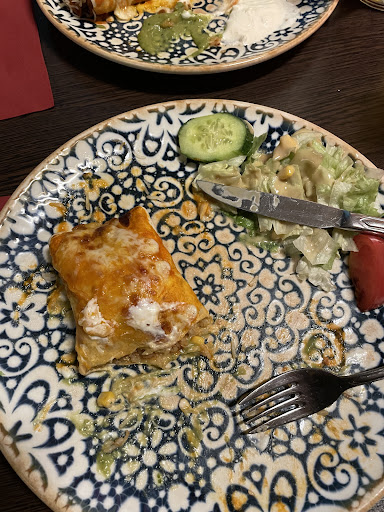 Read moreMein Mann hatte einen Gutschein von Groupon im Wert von 78 € . Wir wollten mal einen anderen Mexikaner ausprobieren.Wir waren enttäuscht. Vorspeise waren diese Tortillachips mit drei verschiedenen Dips, hingestellt fertig.Normalerweise sagt einem der Service was das für Dips sind ohne das wir nachfragen müssen.Dann kam ein Salat ,war frisch aber für 7 € auf einem Frühstücksteller nur Eisbergsalat zwei kleine Viertel Tomaten ein Scheibchen Orange und 1Teelöffel mit roten Bohnen dazu vielleicht einen Esslöffel Senf Dressing, wobei man Boden vom Teller sehen konnte.Naja .Die Servicekraft kam und nahm schwungvoll meinen Salatteller und schüttete mir das restliche Dressing auf meine Hose.Sie ,oh Entschuldigung und dabei blieb es dann auch.Die Hauptspeise konnten wir uns aussuchen,mein Mann nahm ein Pfannengericht und ich hatte ein Hähnchengericht. Spaßeshalber schauten wir zwischen durch in die Speisekarte was es bis dahin kosten würde ,wir waren bei 55€ .Als Nachspeise hatten wir gedacht vielleicht gibtees was ein bisschen typisch mexikanisch sein könnte da wir dies auch nicht aussuchen konnten ,zwei Kugeln Eis mit etwas Schlagsahne und Karamellsoße .Da waren wir bei 63 € .Was ist mit den 15 € die noch übrig sind. Wir fragten nach.Und das war jetzt die Krönung des ganzen. Diese Servicekraft meinte, weiß ich nicht muss ich mal ansprechen ich helfe heute nur aus.Mein Mann meinte und was ist jetzt mit meiner Frau ihrer Kleidung die sie ja beschmutzt haben ( hat nicht mal ein festes Tuch gebracht) .? Ihre Antwort, wortwörtlich: Ich bin auch nur ein Mensch, das kann ja mal passieren. Fazit Geht dort nicht mit einem Groupon Gutschein Essen,da es mit dem was ihr bezahlt für den Gutschein ansatzweise nicht stimmt. Wir sind enttäuscht und wir werden dort kein zweites...