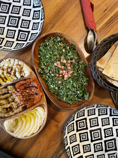 The menu on Malakeh's website looked promising. We were looking forward to dinner in the restaurant. What a disappointment! The high prices of the food and drinks are not in proportion to the quality. The decor is cold and uncomfortable. Upon arrival you will receive one tablet on which you must make your choice with the entire group. That takes a very long time. As a result, there is hardly any personal contact with the staff. Charging almost 5 euros per person for one jug of tea from which just two cups can be poured is absurd. The Baba Ganoush and Muhammara cost 7 euros and are served as a starter in very small bowls, with a basket of cold, not fresh bread. The main courses were completely disappointing. A vegetarian dish consisted of dry rice with a little sauce and a few pieces of vegetables from the freezer. My partner's meat dish was a small dish of 5 small meatballs and again dry, cold and stale bread. Sixteen euros are charged for this. We had to pay 80 euros for 2 starters, 3 main courses and 3 cups of tea. For that money you can eat the stars from heaven in Berlin. But not in Malakeh. That restaurant is a deception. At the döner shop on the corner of the street you get better food...