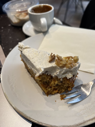 Read moreWhen this cafe opened I was really thrilled! It's the friendliest, cosiest cafe to sit and relax both in Summer outside on the sidewalk tables and in the festive months, especially on the weekends during the XMAS market right outside. Their cakes are really great, favourite is the carrot cake, vegan cake and I take a bag of home made granola to go for yogurts or breakfast at home! I visit the cafe easily several days a week because the people that run it are so friendly and I like the variety of milks you can mix with your cappuccino like coconut milk :) I would definitely come by here, it's also well managed, very clean and located on one of the most beautiful streets in the central area of Hackescher Markt. Just minutes walk to movie theatres, Monbijou Park at the river, Museum Island and lots...
