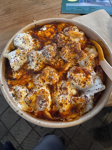 Read moreTurkish small dumplings with tomato sauce and sauer yoghurt, we tried one with Spinach and cheese and one with red meat filling. With Spinach filling was better, although the red sauce was very oily and sauer yoghurt was very sauer...