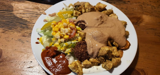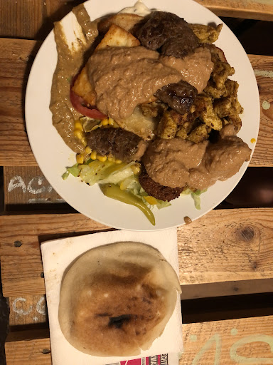Read moreThey don't skimp on the peanut sauce, which is their signature addition to put on almost every dish and they don't charge extra for it like most quick food places in Germany would have you pay for a store-bought ketchup or mayonnaise. The falafel are quite unique, yellow on the inside and not green, so I think they are made out of corn/cornmeal. They are the right consistency and moistness level too. The köfte are firm little pellets. Other than these few differences, I don't see how this is different than your typical Turkish Döner kebab joint, but with different spices. Nonetheless, I very...