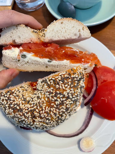 Read moreA very cute bagel shop that has it all. I started my meal with a variation of their breakfast sandwich (sausage, egg, and cheese on a sesame bagel), and it was perfection! There's nothing like it in Berlin. Then there are these fresh-baked sweets next to the register that are calling out to you. I had the chocolate chip cookie and the babka. Both were excellent. The cookie has just the right amount of saltiness to it.