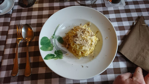 Im Laufe der Zeit haben wir uns durch die Karte probiert. Wir nahmen Tomatencremesuppe, Minestrone, Foccacia, Vorspeisen wie die seit kurzem angebotenen Süßkartoffeln im Speckmantel auf Rucolasalat, Pasta-Klassiker wie Spaghetti Carbonara und Lasagne, Pizzen, darunter auch die interessanten Pizzen einmal anders. Pizza mit Birne schmeckte mir sehr gut. Des weiteren Fleischgerichte wie Schweinfiletmedaillons in Pommerysenf-Sauce und den Klassiker Saltimbocca alla Romana. Einige Male bestellten wir Gerichte von der Saisonkarte, auch diese waren sehr gut. Was wir bestellt haben, war immer lecker, die Portionen großzügig bemessen.