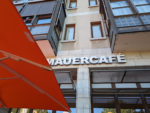 Read moreGleich nach Ladenöffnung betraten wir das gut gelegene Café. Zwischen kunstvoll gestalteten „Mauerresten“ sowie einem Mix aus LED-Lichtern und Holzoptik nahmen wir zu 8 an der hinteren Tafel Platz. Der Heißhunger auf Currywurst hat das relativ lange Anstellen (wir waren die einzigen Gäste und mussten unser Essen selbst aus dem Kühlschrank holen) erschwert. Leider ist der Hunger wieder schnell verflogen, nachdem klar war, dass die Currywurst in Einmachgläsern serviert wurde. Auch die Chance auf ein typisches Berliner Geschmackserlebnis blieb aus, sodass sieben von acht Personen ihr Essen mehr oder weniger unangerührt ließen. Hervorzuheben ist jedoch der Roséwein, ein Franzose wohl gemerkt, der die heißkalte Currywurst wieder schnell runtergespült hat.