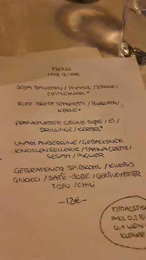 Had a reservation on a saturday night, went there for food and drinks. The place was quite crowded but we didn't think that was a problem since we saw at least 6 people working in service and behind the bar. Only after over half an hour and after we explicitly asked if it now finally was possible to order our food, we were told that only two dishes from the menu were still available. We ordered the Frankfurter Grüne Soße two times. In the meantime we were served our carafe of wine (after another 25 min) in a beer glass bc they ran out of carafes, which is not a big problem but the way in which this was communicated gave more of a "we couldn't care less" than "we're sorry for the inconvenience" vibe. While still waiting for the food, the two persons sitting on the table next to us and who came in after us were served a variety of plates with special service from a person seemingly being the owner/more in charge than the other staff. After asking several times and waiting for roundabout an hour, we were served some olives and bread, I guess as some kind of compensation. Shortly after one (!!) of the dishes was served, the second one was served after we already had finished the first one. We only had to pay for one of them. The quality and taste of the food was okay, nothing more, nothing less. In general, the place has a nice atmosphere, food and drinks are average but the staff is quite obviously completely overstrained and tbh quite rude in a weird way. We were given the feeling it was some kind of our fault we had the audacity to show up on a Saturday night with such high expectations as being served in a friendly way and additionally wanting to eat at the place. For us, that was...