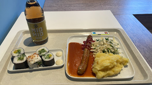 Anders als an vielen anderen Unis gibt es hier auch keine frei zugänglichen Mikrowellen bspw. eben für Studis, die nicht jeden Tag japanisch essen möchten, da das (auf Nachfrage) nicht gut fürs Geschäft wäre" und sie "auf Wirtschaftlichkeit achten" müssten.