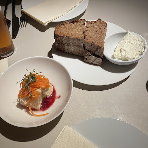 Read moreWhere to begin… Maybe we were just unlucky but we really had a hard time enjoying this evening: We ordered the 5 course menu for sharing and had to wait 1 hour before the first course arrived (bread and Camembert), then another hour for the second course to arrive (kale & fish). After that the pace picked up a little bit but the service was really not well organized. All 3 staff members attended every table at random it seemed, therefore much less in tune with the needs of each table. While the table next to us seemed to have ordered the bigger tasting menu where cutlery was exchanged after each course, we had to request on our own a fresh set after eating 6 different dishes (sustainability aspects aside). So much for the service. Unfortunately, also the food was disappointing - it was just not to our liking. From the fermented cheese that was too sour to the overly burnt onions and the trio of celery that was just a bit boring. Sorry to be so blunt but the best tasting dish was the warm bread with the Koji butter only followed by...