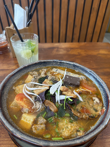Anyway, forget about any fancy fusion food here, so the plates you can order are quite different from the other Vietnamese restaurants/Bistros. Here, it's all about authentic Vietnamese cooking. They don't have a huge menu. We saw many people order the big dish to share, but we didn't feel like having it. So we tried a couple of their rice noodle dishes, one in a steaming broth and the other supposed to mix with the sauce. Both were absolutely scrumptious! The flavors were fresh, balanced, and bursting with authenticity. It wasn't greasy or overwhelming, just pure Vietnamese goodness.