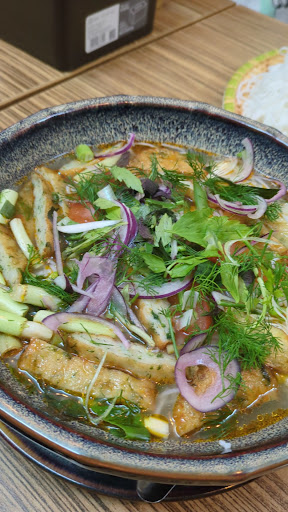 Read moreGiven the extremely positive reviews, we decided to try this place out. I have to say that I am no expert in northern Vietnamese food, but for me this was border line inedible. We tried the plate for 2 called Met Boom Dau. The rice noodles are served in small sticky squares, but cold, which is a no go. The fried meat and tofu was nothing special and the pork slices were also cold and the fat is just there, it’s not crispy or marinated and I found this quite disturbing. The salad is mostly mint, which again I found odd. Plus the salad has no dressing. The whole plate was dry and mostly cold. If all this weren’t enough, the plate was 40€, which would have been too much even if it had been good. Again, maybe this is how this kind of food is meant to be served and eaten, but I really didn’t like it. One other detail, there...