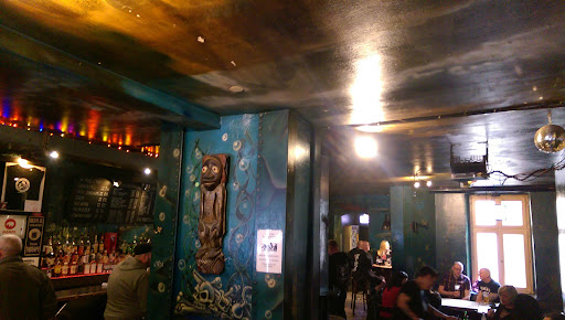 Dimly lit cocktail bar with an edgy, old-school feel, plus foosball & pinball machines.