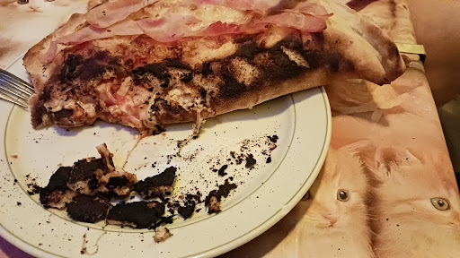 Dann erwarte ich, dass die Pizza neu zubereitet wird oder ich einen Preisnachlass erhalte. Uns wurde die verbrannte Pizza kommentarlos "untergeschoben". Wir haben erst zu Hause entdeckt, wie sie aussah, siehe Foto. Da hatte ich schon etwas vom Teig abgeschnitten. Dafür gibt es Punktabzug.