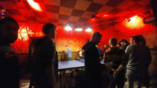 Amazing place, great location, cool decoration, killer vibes and lightning fast table tennis matches. Sadly, this doesnt compensate for my negative experiences. The bar staff at the garderobe seemed very uninterested in helping the guests. Slow service and rude communication from the ladies at the front bar werent a great start of the evening. Besides that one of these girls tried charging me 45 euros for a SINGLE stamp just to go outside to smoke and covered it as "contribution for the DJ". (Even tho the DJ's mixing capabilities were comparable to that of a drunken todler) When i responded in a slightly confused way on her charging me this mental amount of money she played it off as the pinmachine being broken. Funny thing is, I heard from others that she tried to pull the same scam on them as well. The bar is a fun experience, but i feel like it's a bit of a tourist-trap...