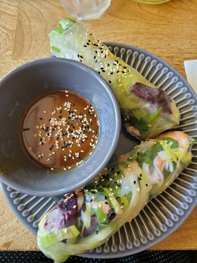 Read moreMiss Minty und ihre Mitarbeiterinnen bieten den Gästen eine exzellente Auswahl an sehr delikaten asiatischen Vorspeisen und Hauptgerichten, vorwiegend vietnamesischer Provenienz, an. Alles wird frisch zubereitet und kommt optisch sehr ansprechend angerichtet auf den Tisch. Wir haben dort schon Fruhlings- und Sommerrollen genossen, ebenso zarte Hühnchen Brust in Currysauce mit frischen Salaten, Erdnüssen, Röstizwiebeln etc., außerdem Salat mit Glasnudeln und Garnelen, gebratenes Rindfleisch auf Gemüse mit Reisnudeln und Ingwer- Limetten- Sauce, auch Garnelen mit Cashewnüssen, Limetten-Zitronengras-Sauce und Duftreis. Auch die Tees und anderen Getränke sind sehr professionell zubereitet und schmackhaft. Das alles wird in einem geschmackvoll- schlichten Ambiente serviert, man sitzt sehr bequem in stilvollen Sesseln, ohne plüschig zu versinken. Die Preise sind eher geringer, als es das Niveau des Angebotes vermuten ließe und rechtfertigen würde. Das Platzangebot mit rund 20 in House und vier kleinen Tischen vor dem Café ist recht eingeschränkt, aber durch die Mitarbeiterinnen eben auch gut zu beherrschen. Keinen Zweifel: volle Punktzahl und...