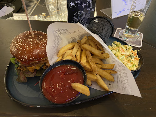 Read moreDas Essen ist nicht besonders doll und entspricht auch nicht unbedingt der Beschreibung. Bei Fish & Chips z.B. entsprach das sehr trockene Fischfilet in der Größe etwa zwei Ölsardinen und der beschriebene (und bei diesem Gericht übliche) Bierteig wurde einfach mal komplett vergessen. Das Schnitzel Holstein hatte ebenfalls mit dem versprochenen Wiener Schnitzel wenig gemein, ich hätte es eher als halbes Medaillon beschrieben, sowohl von der Art als auch der Zubereitung. Und als Vegetarier sollte man woanders essen gehen. Viel Auswahl gibt es nicht und der ohne Huhn bestellte Salat hatte dann einfach mal welches drauf.
