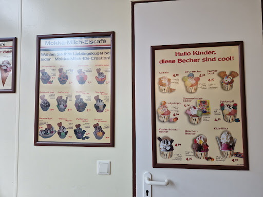 Ich war heute mit meinem Sohn erneut in der Eisdiele und wurde sehr überrascht, denn hinter der Theke stand eine sehr freundliche Mitarbeiterin. Zuvor war ich mehrfach mit meinen Kindern dort (es ist in der Nähe von der Schule und schnell zu erreichen), doch da war ein Mitarbeiter vor Ort, der Freundlichkeit nicht gerade groß schreibt. Es ist wirklich sehr schade, denn für Kinder ist ein Eis essen ja immer etwas Schönes. Außerdem muss ich sagen, dass die Preise ähnlich sind, wie bei anderen Eisdielen, in denen man große Eisbecher in richtigen Gläsern erhält. Ich verstehe es zum Teil, vielleicht ist die Möglichkeit nicht gegeben um das Geschirr zu spülen, jedoch sollte die Anrichtung nicht darunter leiden. Meine Tochter hat ein Spagettieis gewählt, dieses kostet 7,50 Euro und es sah leider kein wenig ansprechend aus. Der Rand war vollgeschmiert und es wurde nicht einmal etwas dazu gesagt. Wäre eine weitere Eisdiele in der Nähe, dann würde ich definitiv woanders hingehen, außer die freundliche Mitarbeiterin von heute...