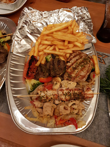 Zu dem Essen. Hatte den Grillteller mit 3 Sorten Fleisch bestellt und komplett enttäuscht worden. Das Rind war nicht größer als eine Untertasse und total trocken und fest. Das Schwein war ein kleines bisschen größer aber genauso. Das Hühnchen war etwas zarter aber genauso trocken. Der Spieß war eine Mischung aus Zäh und 2 Tage altes in der Mikrowelle aufgewärmtes Hähnchen. Die "Grilltomate": War eine hälfte mit einem lausigem Tomatenwürzer. Die Rosmarinkartoffeln waren wirklich gut.