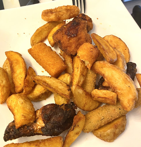Was frisch war, war der Salat, alles am Tex Mex Teller war irgendwie Pfad, die Chicken Wings waren verkohlt und die Chicken Nuggets ok.