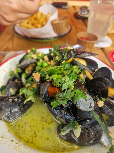 The price/performance ratio is incredible, some of the best fries I've had, the homemade dip is amazing and the mussles are to die for. The portion is huge, no empties or closed shells and the meat is so so tender and flavorful. The elderflower limo as well as the Picon Bière are so tasty.